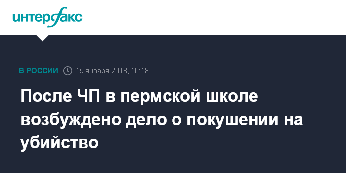 Москва. 15 января. INTERFAX.RU - Следственные органы возбудили уголовное дело после нападения на учеников в пермской школе, сообщили "Интерфаксу" в республиканском СУ СКР.