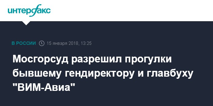 Мосгорсуд разрешил прогулки бывшему гендиректору и главбуху "ВИМ-Авиа"