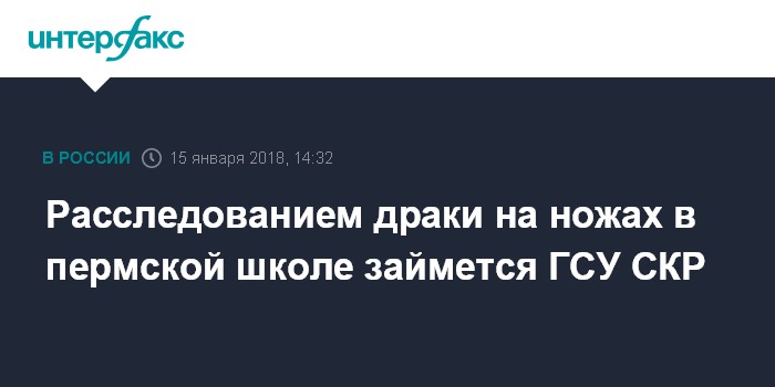 "По поручению председателя СКР, уголовное дело о причинении ножевых ранений школьникам в Пермском крае передано в производство Главного следственного управления СКР", - сказала Петренко в понедельник "Интерфаксу".
