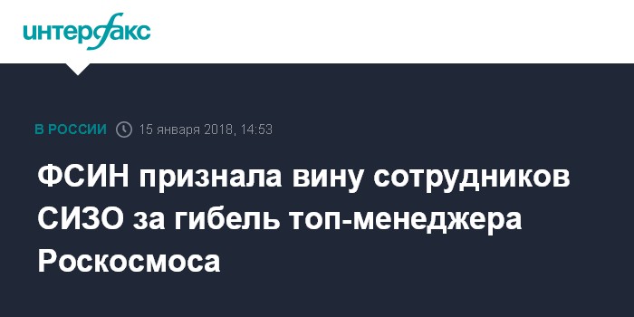 ФСИН признала вину сотрудников СИЗО за гибель топ-менеджера Роскосмоса