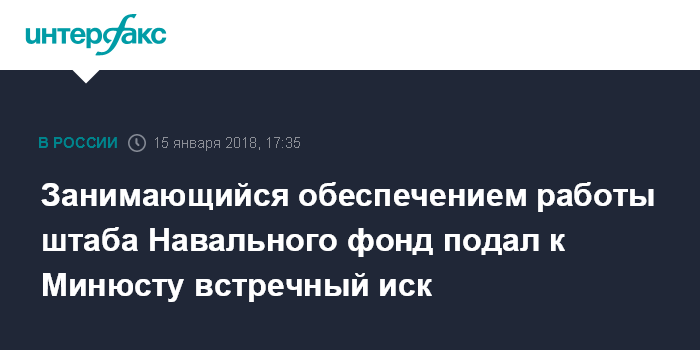 Занимающийся обеспечением работы штаба Навального фонд подал к Минюсту встречный иск