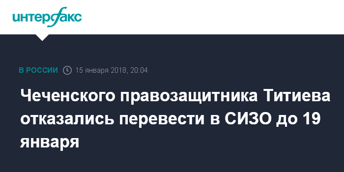 Он уточнил, что в день задержания Титиев ехал на протезирование. В связи с этим, утверждает защитник, "он испытывает сильную физическую боль, так как без протезов не может есть твердую пищу и вынужден питаться фактически детским питанием".