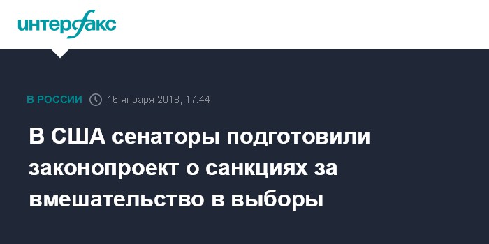 Москва. 16 января. INTERFAX.RU - Американские сенаторы подготовили законопроект, предполагающий введение новых санкций в отношении России, а также санкций в отношении других стран в случаях попыток вмешательства в выборы в США, сообщил во вторник телеканал CNN.