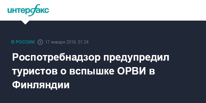 Москва. 17 января. INTERFAX.RU - Роспотребнадзор просит российских туристов, планирующих поездку в Финляндии, учитывать информацию о вспышке респираторно-синцитиальной инфекции в этой стране, которой только за первую неделю года заразились более полутысячи человек.