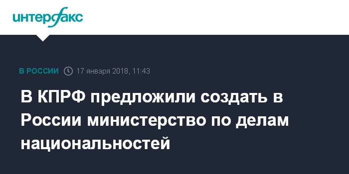 Москва. 17 января. INTERFAX.RU - Во фракции КПРФ выступают за создание в РФ министерства по делам национальностей.