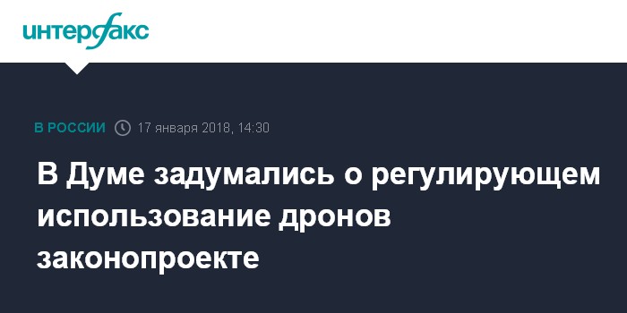 Москва. 17 января. INTERFAX.RU - В Госдуме предложили создать рабочую группу для разработки законопроекта о регулировании использования беспилотников.