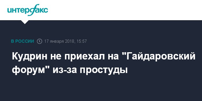 Москва. 17 января. INTERFAX.RU - Глава совета Центра стратегических разработок (ЦСР) Алексей Кудрин не смог принять участие в "Гайдаровском форуме", который проходит в эти дни в Москве, из-за простудного заболевания.