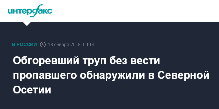 Обгоревший труп без вести пропавшего обнаружили в Северной Осетии