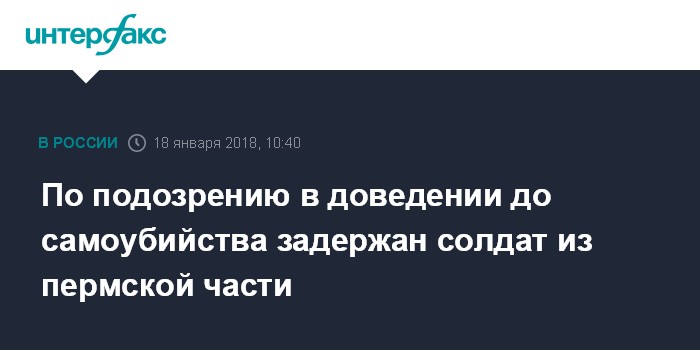 По подозрению в доведении до самоубийства задержан солдат из пермской части