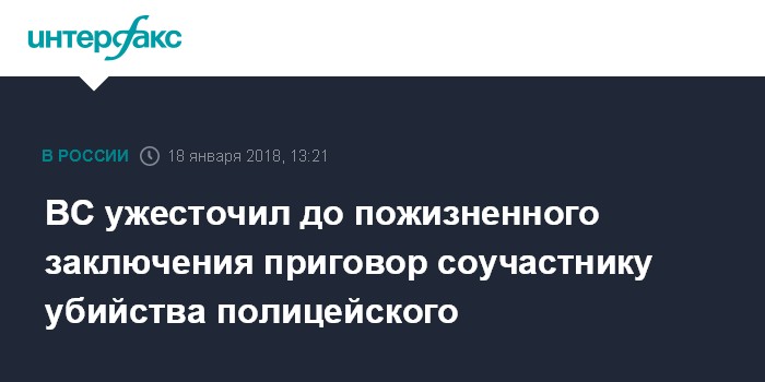 ВС ужесточил до пожизненного заключения приговор соучастнику убийства полицейского