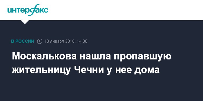 Москва. 18 января. INTERFAX.RU - Уполномоченный по правам человека в РФ Татьяна Москалькова сообщила, что ей удалось связаться с жительницей Чечни Аминат Автурхановой, о пропаже которой ранее сообщила "Новая газета".
