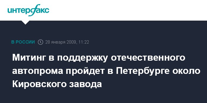 Митинг в поддержку отечественного автопрома пройдет в Петербурге около Кировского завода