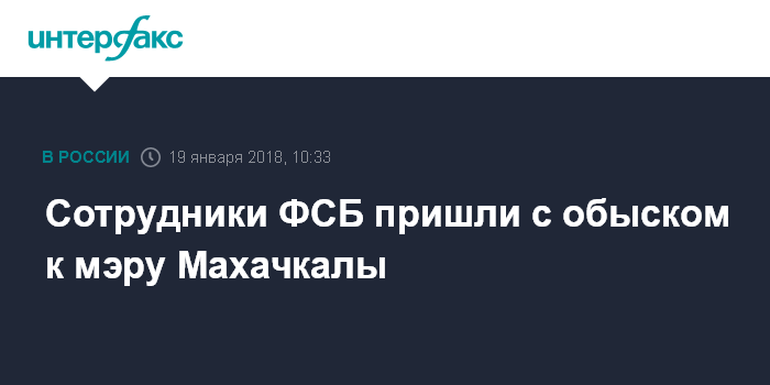 "Сотрудники ФСБ, а также других правоохранительных структур проводят обыски и выемку документов в администрации Махачкалы, а именно в кабинете главы города", - сказал собеседник агентства.