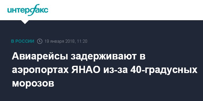 Москва. 19 января. INTERFAX.RU - Несколько аэропортов Ямало-Ненецкого автономного округа не могут вовремя отправить и принять рейсы из-за сильных морозов.