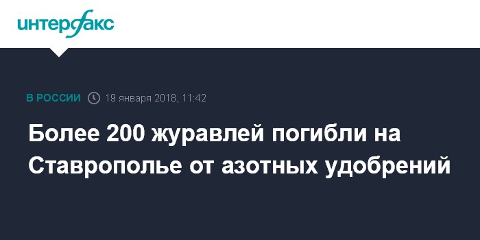 Москва. 19 января. INTERFAX.RU - Массовая гибель журавлей произошла на Ставрополье.