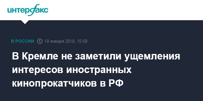 В Кремле не заметили ущемления интересов иностранных кинопрокатчиков в РФ