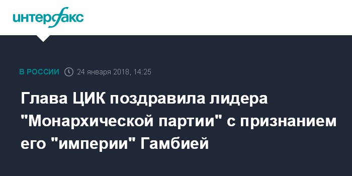 Глава ЦИК поздравила лидера "Монархической партии" с признанием его "империи" Гамбией