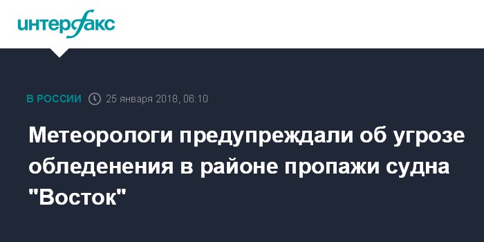 Метеорологи предупреждали об угрозе обледенения в районе пропажи судна "Восток"