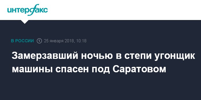 Замерзавший ночью в степи угонщик машины спасен под Саратовом