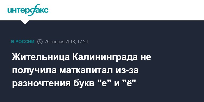Жительница Калининграда не получила маткапитал из-за разночтения букв "е" и "ё"