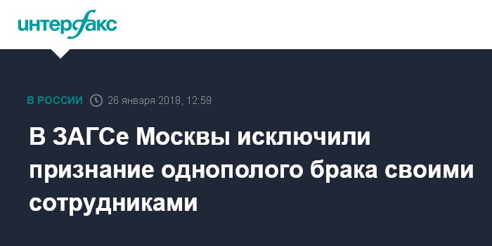 Позже государственное бюджетное учреждение Москвы "Многофункциональные центры предоставления государственных услуг" опровергло информацию о признании в МФЦ однополого брака между двумя мужчинами, заключенного на территории Дании.
