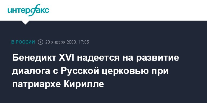 Бенедикт XVI надеется на развитие диалога с Русской церковью при патриархе Кирилле