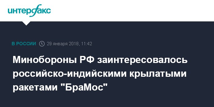 Минобороны РФ заинтересовалось российско-индийскими крылатыми ракетами "БраМос"