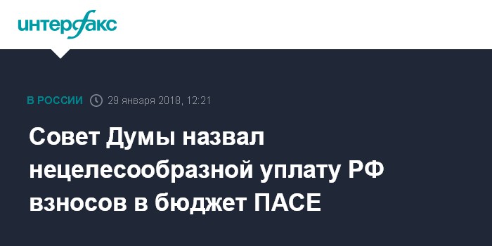 "Считать нецелесообразной уплату в настоящее время взносов Российской Федерации в бюджет ПАСЕ", - говорится в опубликованном на думском сайте протоколе заседания совета Думы, которое состоялось 25 января.