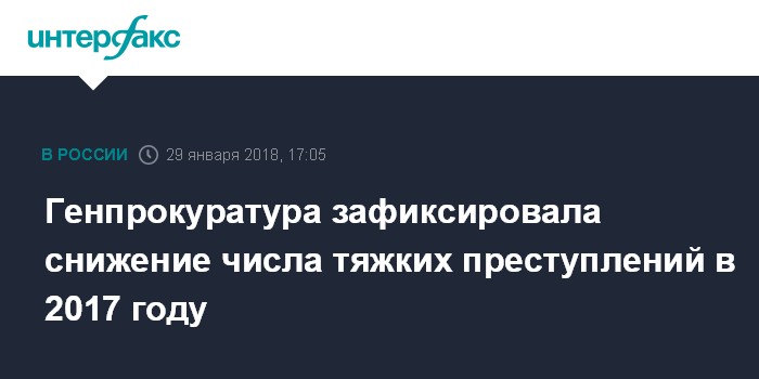 Генпрокуратура зафиксировала снижение числа тяжких преступлений в 2017 году