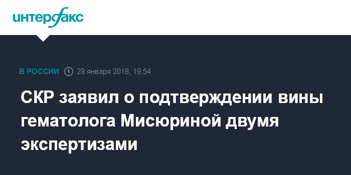 СКР заявил о подтверждении вины гематолога Мисюриной двумя экспертизами