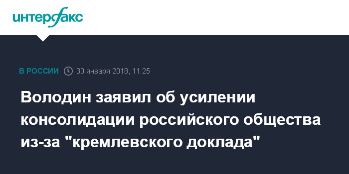 Володин заявил об усилении консолидации российского общества из-за "кремлевского доклада"