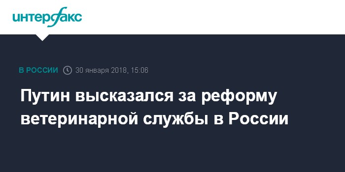 Москва. 30 января. INTERFAX.RU - Президент РФ Владимир Путин высказался за реформу ветеринарной службы в стране.