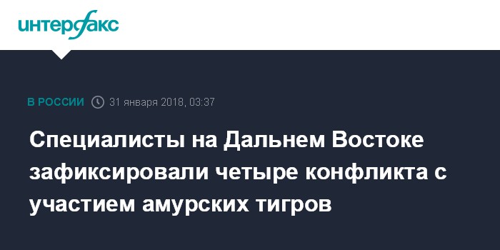 Москва. 31 января. INTERFAX.RU - Экологи и сотрудники охотнадзора отслеживают четыре конфликтные ситуации с участием краснокнижных амурских тигров на Дальнем Востоке.