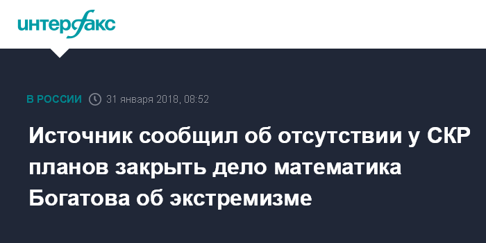 Источник сообщил об отсутствии у СКР планов закрыть дело математика Богатова об экстремизме