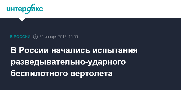 В России начались испытания разведывательно-ударного беспилотного вертолета