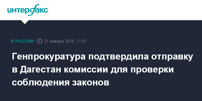 Генпрокуратура подтвердила отправку в Дагестан комиссии для проверки соблюдения законов