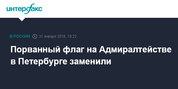 "Это нормальная практика, когда флаги большой площади из-за непогоды приходят в негодность, появляются дыры. Сейчас специальная команда уже заменила его", - сообщили "Интерфаксу" в Адмиралтействе.