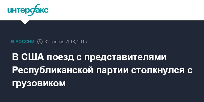 Москва. 31 января. INTERFAX.RU - В штате Западная Виргиния поезд, в котором ехали конгрессмены Республиканской партии США, столкнулся с грузовиком, сообщает USA Today.