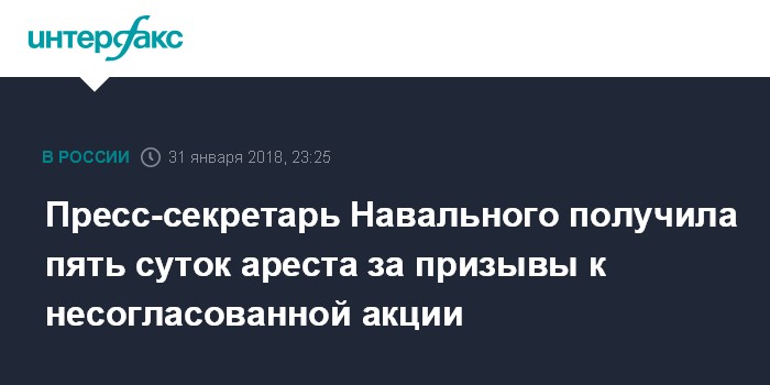Пресс-секретарь Навального получила пять суток ареста за призывы к несогласованной акции