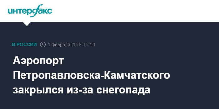 Москва. 1 февраля. INTERFAX.RU - Аэропорт Петропавловска-Камчатского из-за снежных переметов на взлетной полосе закрыт до 12:00 четверга по местному времени (03:00 мск), сообщил агентству "Интерфакс" диспетчер аэропорта.