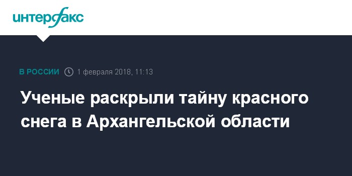 Москва. 1 февраля. INTERFAX.RU - Ученые Архангельской области выяснили, что причиной окрашивания снега в красный цвет на крышах некоторых домов региона стали водоросли.