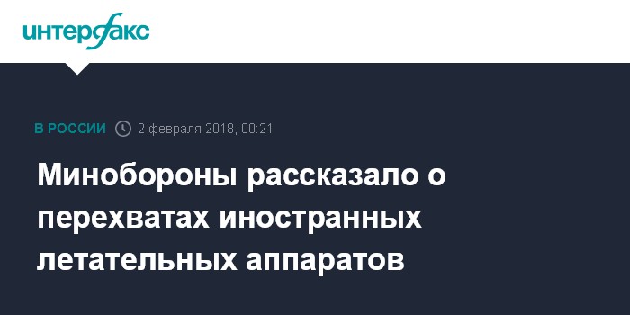 Минобороны рассказало о перехватах иностранных летательных аппаратов