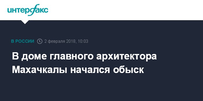 Москва. 2 февраля. INTERFAX.RU - Сотрудники силовых структур проводят обыск в доме главного архитектора Махачкалы (Дагестан), сам он задержан, сообщил "Интерфаксу" информированный источник.