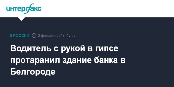 Водитель с рукой в гипсе протаранил здание банка в Белгороде