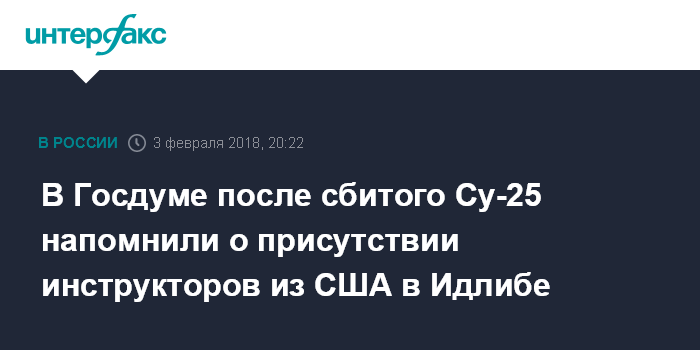 В Госдуме после сбитого Су-25 напомнили о присутствии инструкторов из США в Идлибе