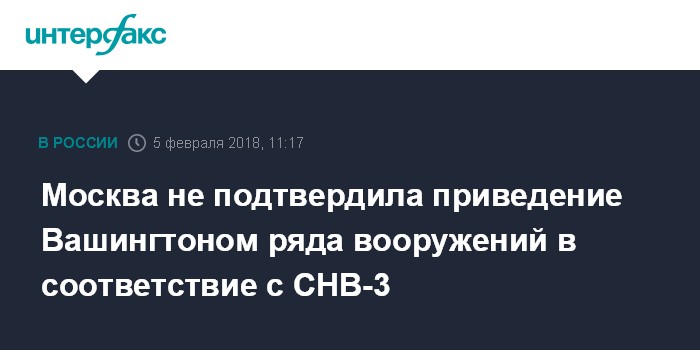 Москва. 5 февраля. INTERFAX.RU - В Москве не могут подтвердить приведение США ряда вооружений в соответствие с требованиями Договора о сокращении стратегических наступательных вооружений, заявляют в МИД РФ.