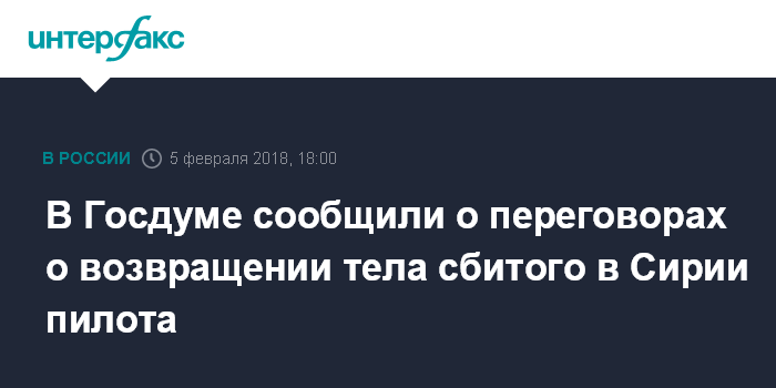 Москва. 5 февраля. INTERFAX.RU - Ведутся переговоры о возвращении на родину тела военного летчика Романа Филипова, заявил координатор "группы дружбы" Госдумы и парламента Сирии, первый зампредседателя организации ветеранов "Боевое братство" Дмитрий Саблин.