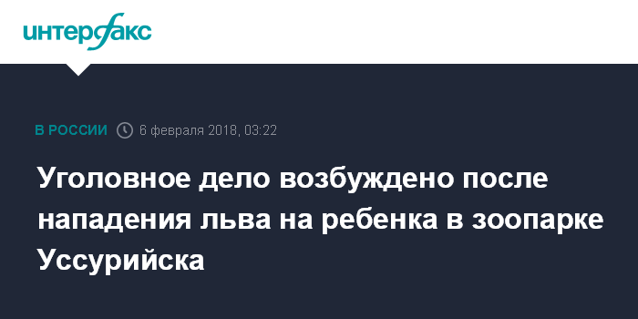 Уголовное дело возбуждено после нападения льва на ребенка в зоопарке Уссурийска