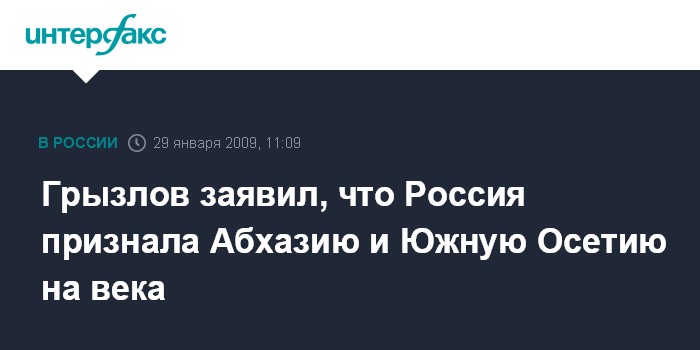 "Бесполезно говорить, что возможен обратный путь, Россия признала Южную Осетию и Абхазию, и это на века", - заявил Б.Грызлов журналистам в четверг, комментируя по просьбе "Интерфакса" принятую накануне в Страсбурге на сессии Парламентской ассамблеи Совета Европы резолюцию по "кавказскому вопросу".
