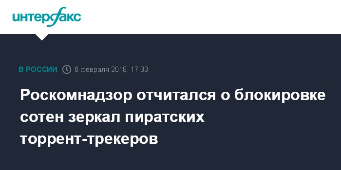 Москва. 6 февраля. INTERFAX.RU - Роскомнадзор за четыре месяца ограничил доступ к более чем 180 зеркалам торрент-трекеров, в том числе RuTracker и NNM-club, говорится в сообщении ведомства.